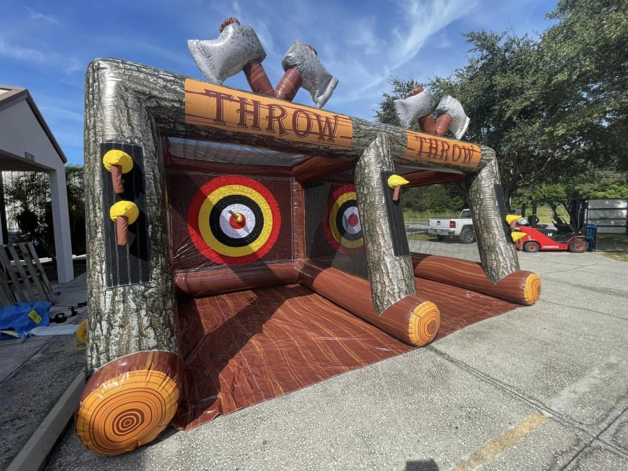 This awesome game features a a wood forest look with 2 axe targets.