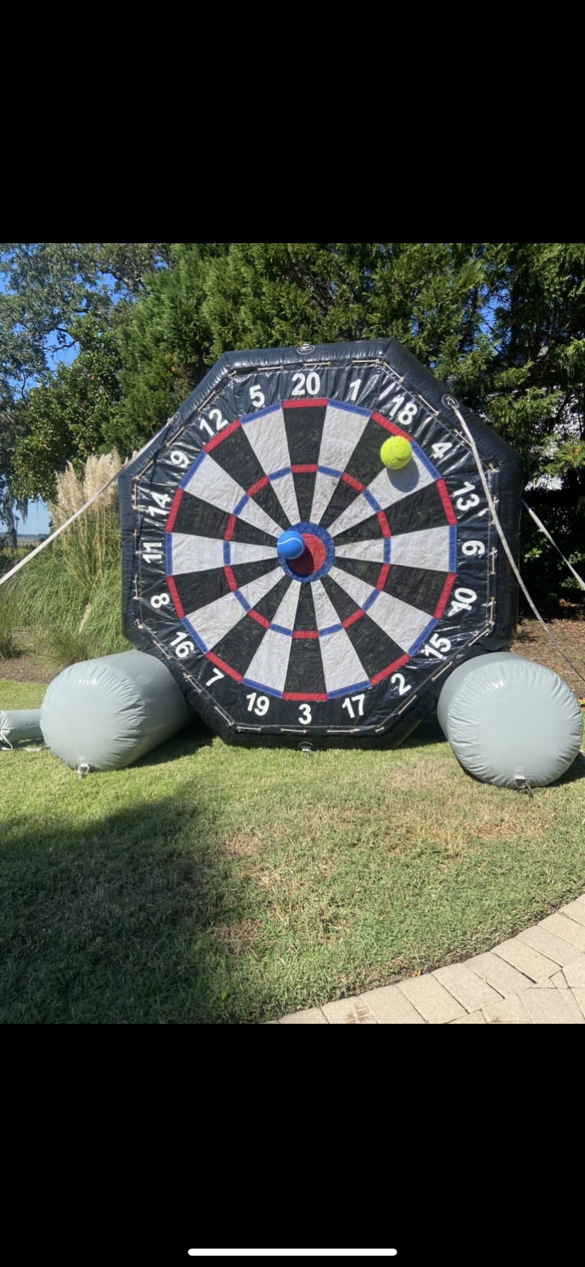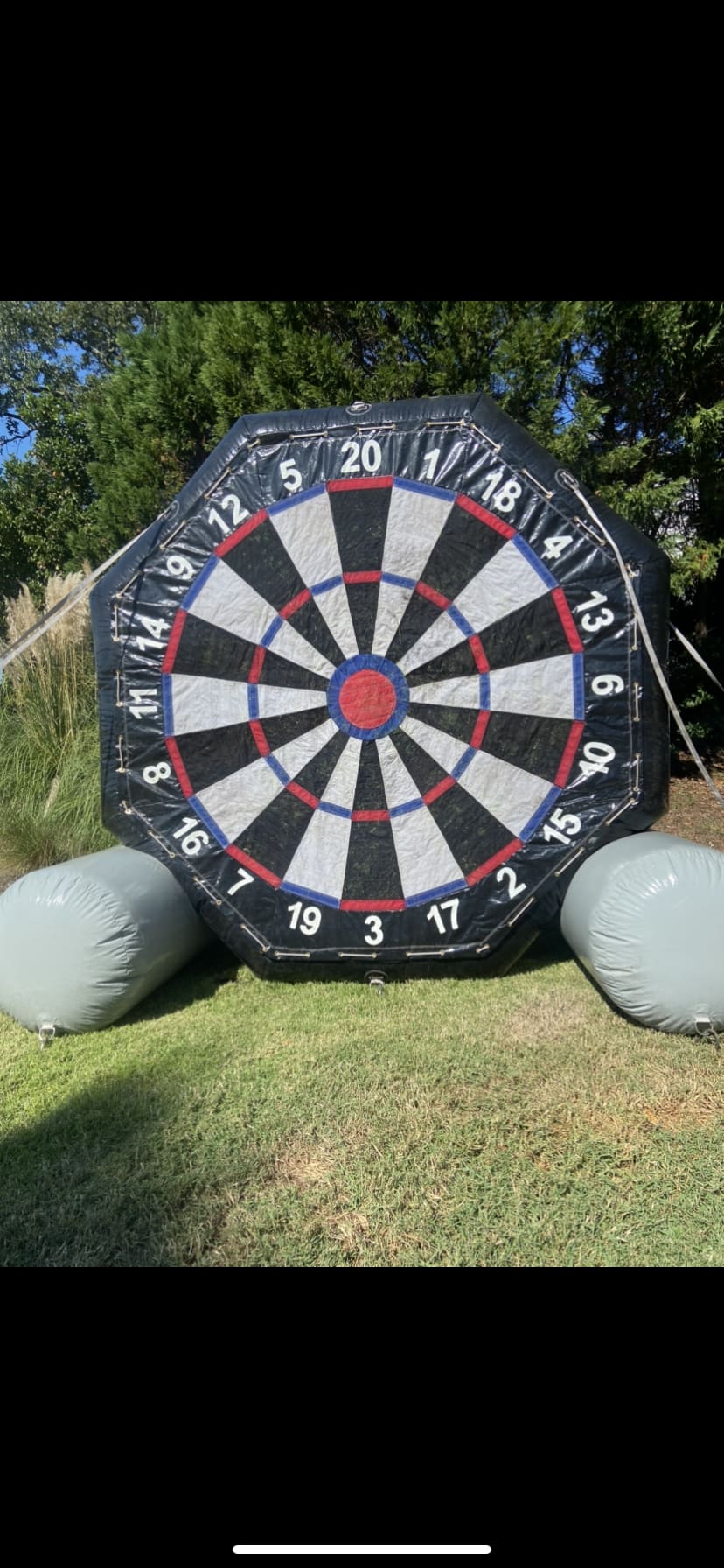 Inflatable Darts, Giant Darts, Foot Darts, Soccer Darts, Kick Darts. No matter what you call it, this inflatable game is sure to be a crowd-pleaser! Giant Soccer Velcro Darts has taken the internet by storm! With the viral video soaring through social media, Giant Inflatable Giant Soccer Velcro Darts has been a huge request! Kick the soccer ball and try to get a bulls eye! This game is perfect for schools, churches, corporate events, team building and backyard parties.