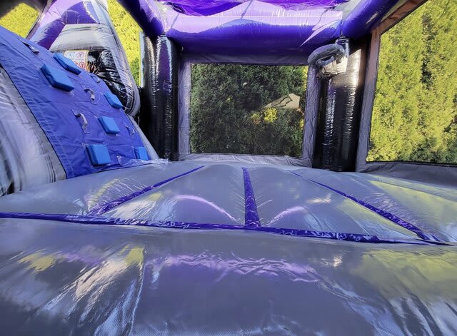 WARNING! The Zombie horde has arrived at your house! Be prepared to have a ton of fun with the Zombie Apocalypse with its huge jump area, basketball goal, climbing wall and slide. The large bounce area allows those little zombie lovers room to play all day, or night jumping, running, or playing basketball inside. A challenging climb up to a 7' slide platform leads to a steep slick slide out. Play in it dry for indoor set-ups or in the cooler months, or add the wet option for an incredible time during the Spring and Summer.