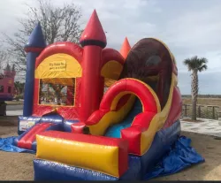The Backyard combo bouncy castle will bring the excitement to your next event or party! Players of all ages can join as this castle really knows how to have fun where children can choose from four different activities in this entertaining bouncy castle. The slide comes off the side.