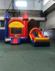 The Backyard combo bouncy castle will bring the excitement to your next event or party! Players of all ages can join as this castle really knows how to have fun where children can choose from four different activities in this entertaining bouncy castle. The slide comes off the side with attached pool to slide into!