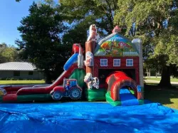 Our Friendly Farm Combo is sure to make a hit at your next party or event!! With the dual lanes sliders can race down to see whose faster and large jumping area it’s perfect for ages 2-10.