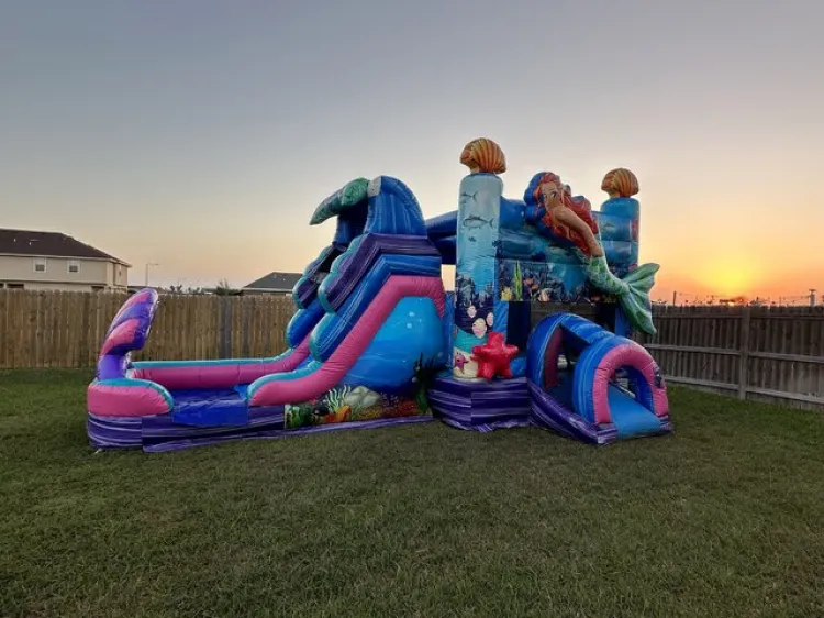 • Our Magical Mermaid Bounce House Slide Combo is perfect for every party or event! With it's vibrant colors and great graphics its sure to be a hit anywhere!