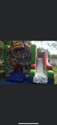 Reach for the sky! Your little ones can go to infinity and beyond in our Toy Story themed inflatable. This combo offers over 300 square feet of play area and features vertical and horizontal pop ups a climb area and an attached slide to keep your guests bouncing all day long this slide is for dry use only.
