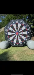 Inflatable Darts Giant Darts Foot Darts Soccer Darts Kick Darts. No matter what you call it this inflatable game is sure to be a crowd-pleaser! Giant Soccer Velcro Darts has taken the internet by storm! With the viral video soaring through social media Giant Inflatable Giant Soccer Velcro Darts has been a huge request! Kick the soccer ball and try to get a bulls eye! This game is perfect for schools churches corporate events team building and backyard parties.