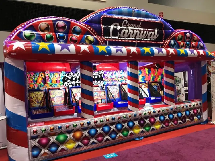 Step right up and experience the thrill of the carnival with our inflatable Grand Carnival Game Booth! This one-of-a-kind inflatable attraction is perfect for parties events and family gatherings providing hours of entertainment and excitement for all ages.