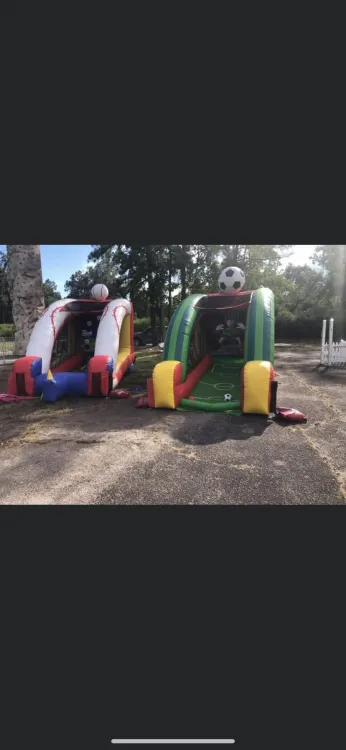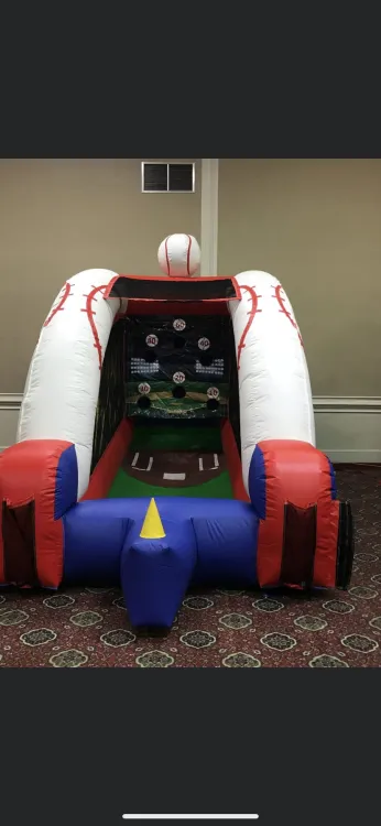 Batter Up!!!! Test your batting skills with this fun Home Run Derby interactive game. Participant take turn at bat to see who can hit the floating ball into one of the home run holes. Make it into the hole in the stands to win! Comes with a bat and balls to use. This inflatable features a very cool design and ball park fan image. Good for younger kids to adults.