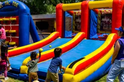 - Triple Threat: This inflatable features baseball football and basketball challenges offering something for every little athlete to enjoy.