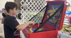The objective of the Shock wave carnival game is to see who can maneuver the wand down the center rod without touching the sides and setting off the beeper!! It's a fun and competitive game for all ages. Now are you ready to take the shock wave challenge and see who comes out the champion? Book now and find out!!!