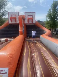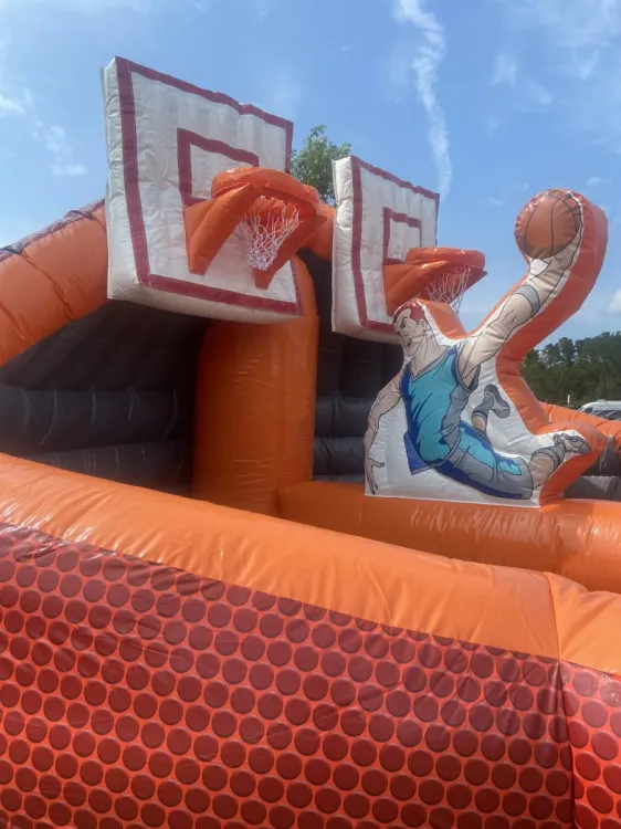 Calling all players basketball! Who will win the Slam Dunk Contest? You or your friend? Race down the alley until you hit the jump pad and then SHOW OFF YOUR SKILLS! The crowd goes wild!!!! This inflatable rental piece is sure to draw attention at your next event!!