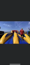 - OCCUPANCY: A maximum of 5-6 kids of equal size at one time for bounce houses, and 1 person at a time for slides is what most inflatable manufacturers recommend.