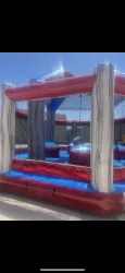 - OCCUPANCY: A maximum of 5-6 kids of equal size at one time for bounce houses, and 1 person at a time for slides is what most inflatable manufacturers recommend.