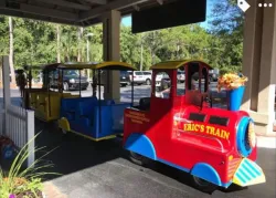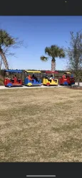 Rent this awesome trackless train to bring life to your event or party! Includes a conductor and loading area Complete with a sound system that has speakers in every cart for the people who really like to party.