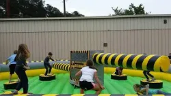 - OCCUPANCY: A maximum of 5-6 kids of equal size at one time for bounce houses, and 1 person at a time for slides is what most inflatable manufacturers recommend.