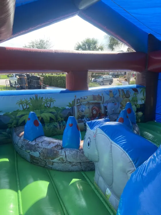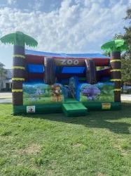 Everyone loves the Zoo and our Leisure Zoo Toddler Combo is loaded with animals and activities. Fully protected side walls keep toddlers safe inside but low enough to allow parents to see inside. The shade cover helps keep things cooler. Kids can play with inflatable animals climb and slide inside and play in the ball pit or make balls float Ideal for Ages 4 & Under