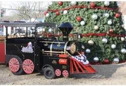 ALL ABOARD! Fun for all ages! This train has speakers in every car for music a whistle bell and real smoke in the engine This train has 3 cabooses.